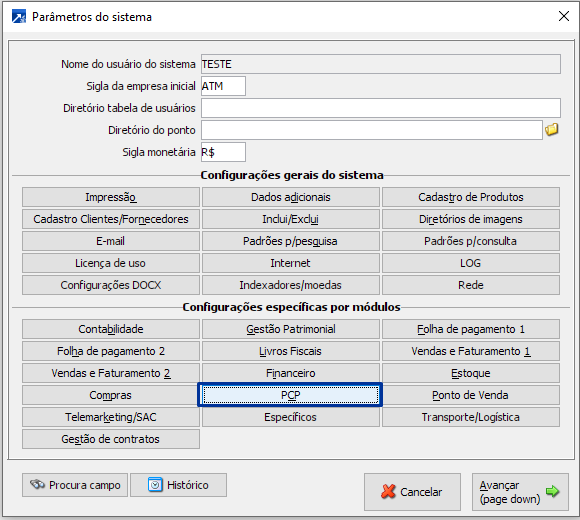 Inicialmente no caso de uma implantação, será necessário uma fase de cadastramentos, para tal, precisa configurar no GIN 1.1-P, botão <PCP>: