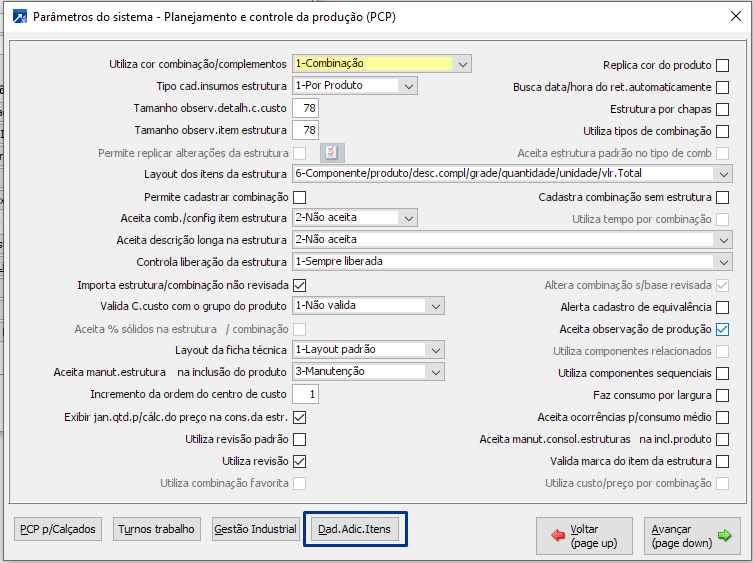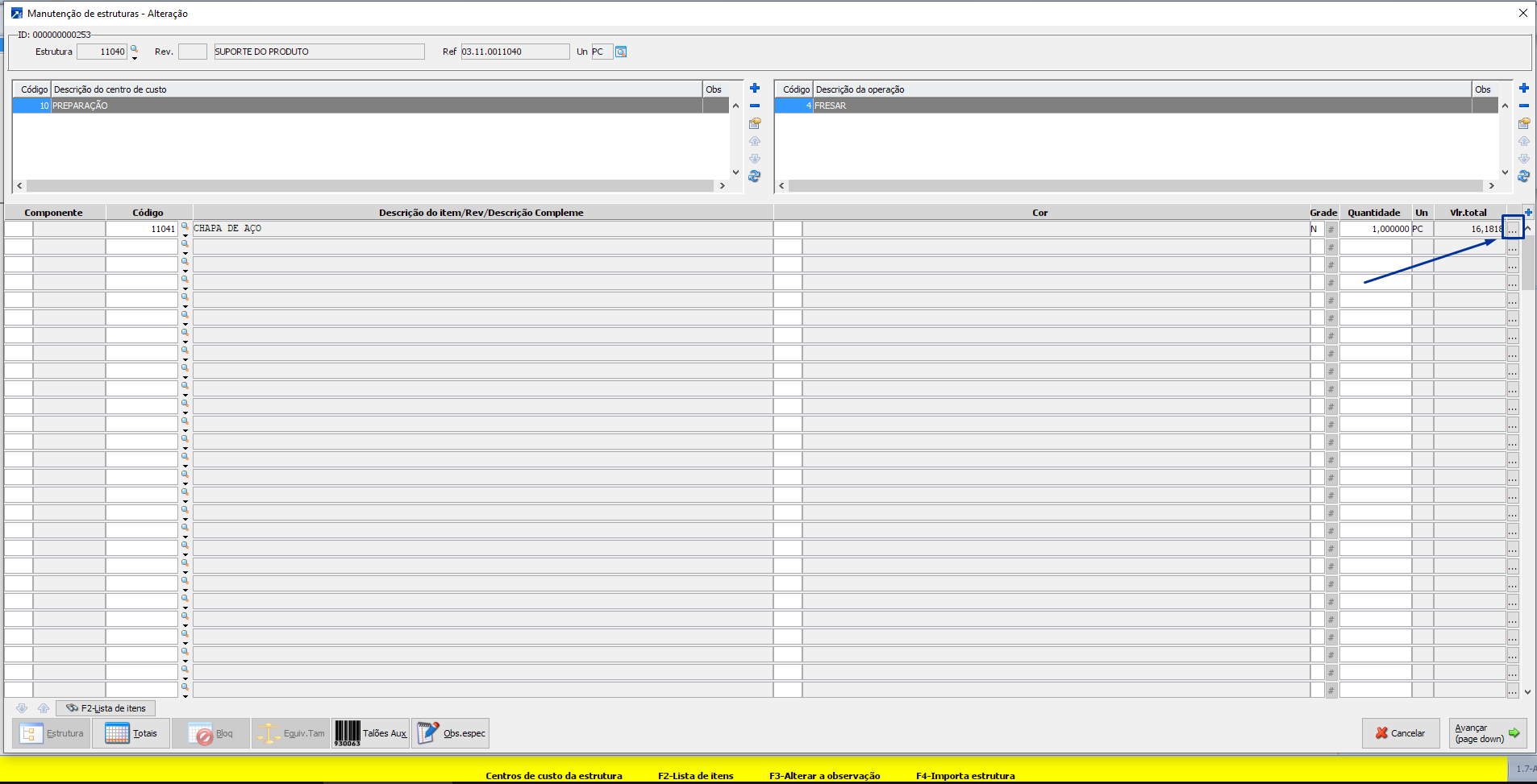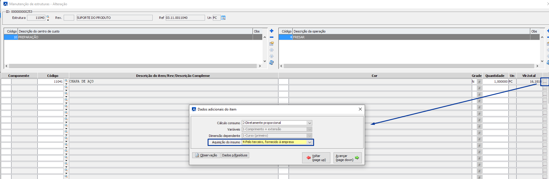 No menu 1.7-A - Alteração de Formulações/Estruturas, nos itens, botão <Dados adicionais do item>: