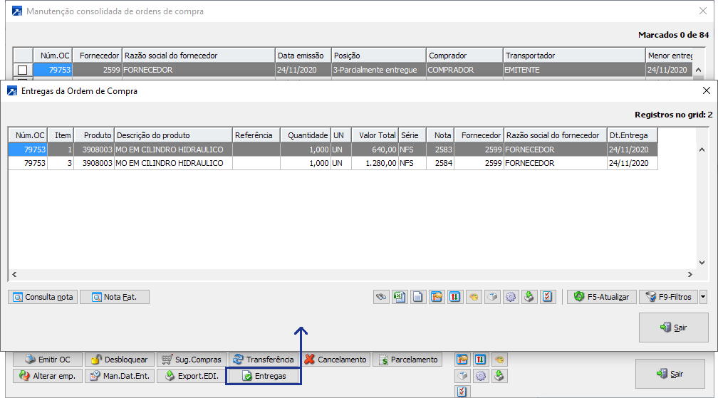 Botão <Entregas> na manutenção consolidada de ordens de compra (COM 2.4-M)
