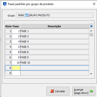 Através do módulo Gestão Industrial menu 7.9-D é possível definir para os grupos de produtos que são utilizados no cadastro de produto, toda vez que for incluso um novo PDP que o SIGER® carregue previamente as fases que serão cadastradas.
