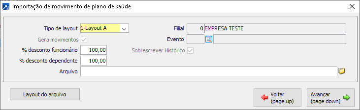 utilizado para realizar a importação dos movimentos do Plano de saúde.