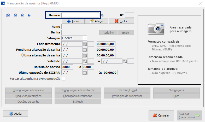 Para inativar um usuário, basta alterar a situação para "2-Inativo".