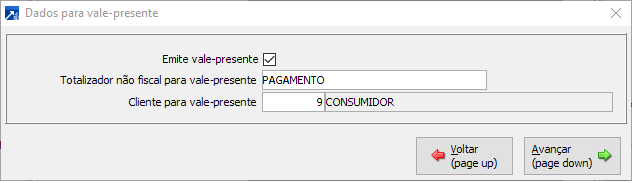 Dados para geração de vale-presente.