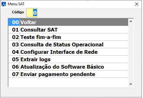 Fornece acesso às funções administrativas disponíveis para os equipamentos SAT ou MFE.