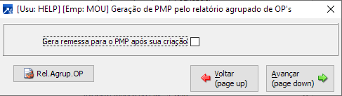 · Gera remessa para o PMP após sua criação: Parâmetro utilizado para envio de remessa de terceiros baseado no relatório que vai ser gerado.