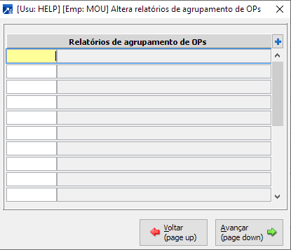 Botão <Rel. Agrup. OP>: Campo onde vai ser informado o código do relatório do gerador de relatórios que vai ser utilizado para geração de plano mestre de produção. Disponível no menu GIN 2.1-M - <PMP rel. agrup>.