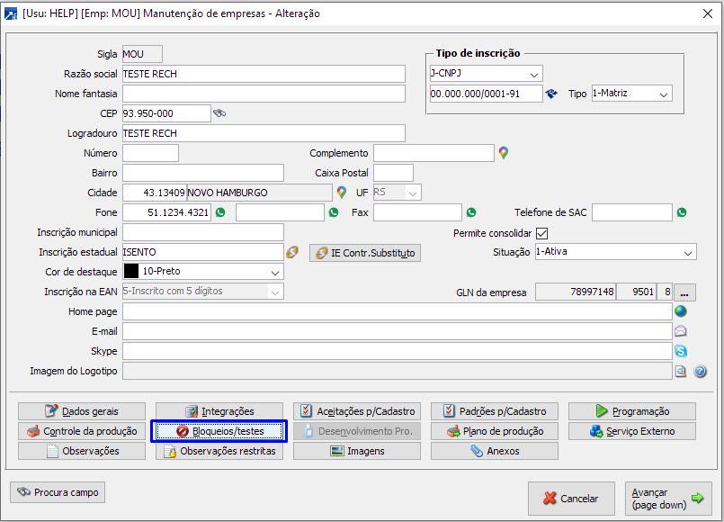Além destes parâmetros, também existem opções para bloqueios/testes do PMP: