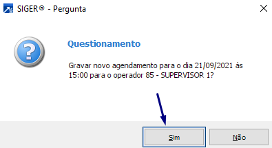 Ao finalizara operação, o SIGER® irá solicitar confirmação.