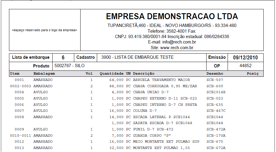 Dentro da funcionalidade de Romaneio de Expedição, é possível realizar listagem das listas de embarque cadastradas. A listagem consiste na emissão de um relatório gráfico com as informações da lista de embarque, itens e volumes, bem como a demonstração das vinculações entre volumes e itens.