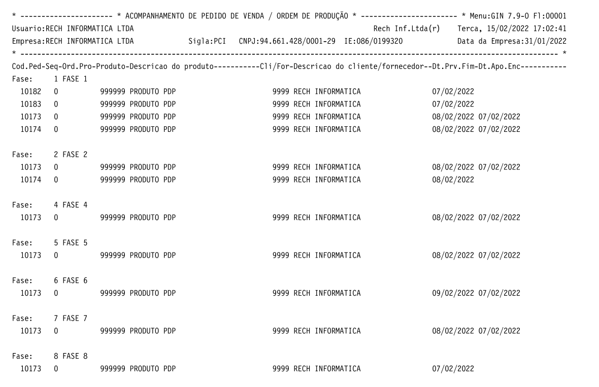 Gerado através do menu 7.9-O o SIGER® irá listar as informações do PDP agrupando através do código da fase e descrevendo demais informações dos PDP’s.