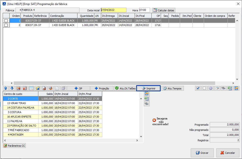 Na opção GIN 2.7-P - Manutenção da programação temos um botão para listar o mapa da programação:
