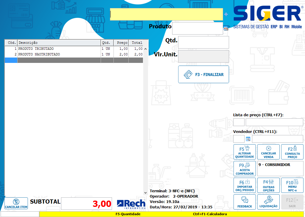 Essa área exibe informações do sistema e do terminal de venda utilizado no momento.