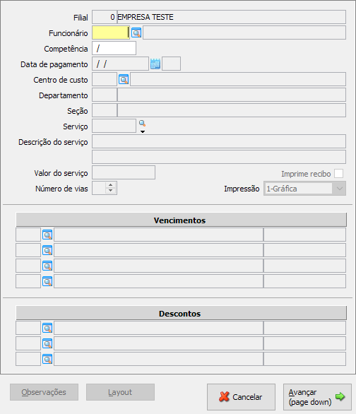 O cadastro do Autônomo é no menu FPA 1.8-I, vínculo 99, categoria 13, categoria eSocial 701, e para calcular a RPA, menu FPA 3.8-L, evento padrão do SIGER® para o pagamento é o evento 70-HONORÁRIOS e o desconto de INSS e IRRF, será calculado de forma automática, no botão <Cálculo e Pagto>, manter desmarcada a check box "Calcula remuneração automatica" e no botão <Salário> informar o valor de 0,01 .