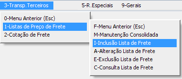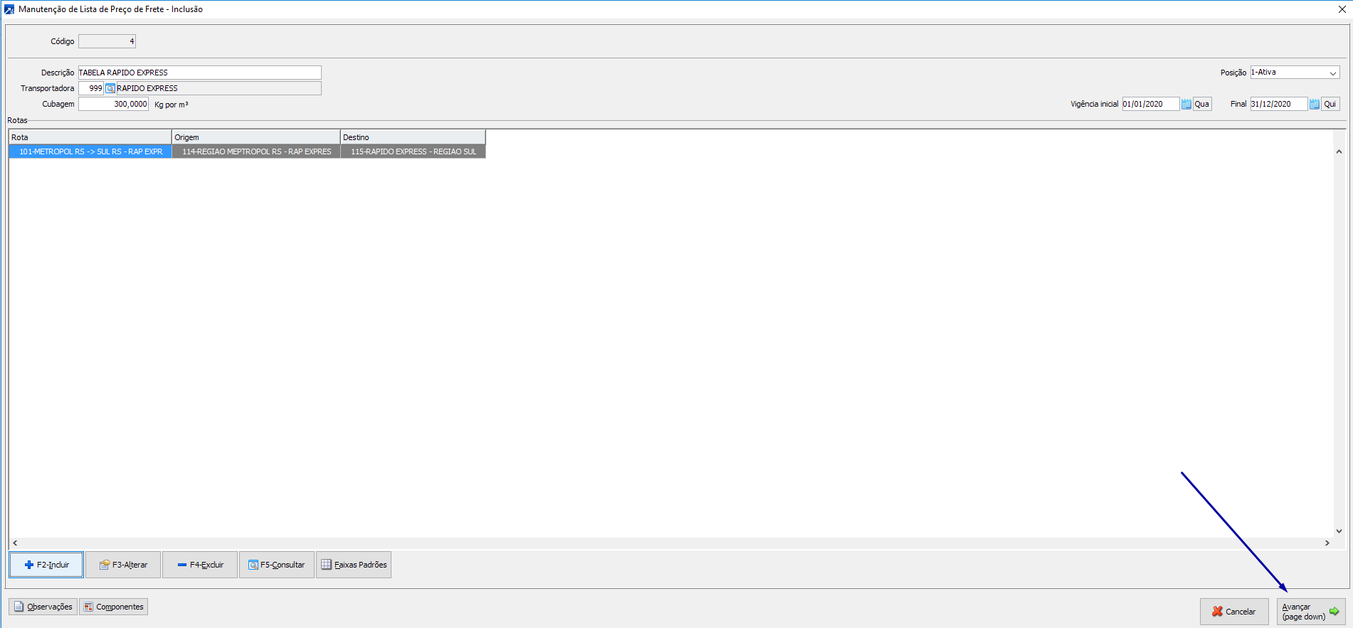 Clique no botão <F2-Incluir> para adicionar uma rota a tabela de preços.
