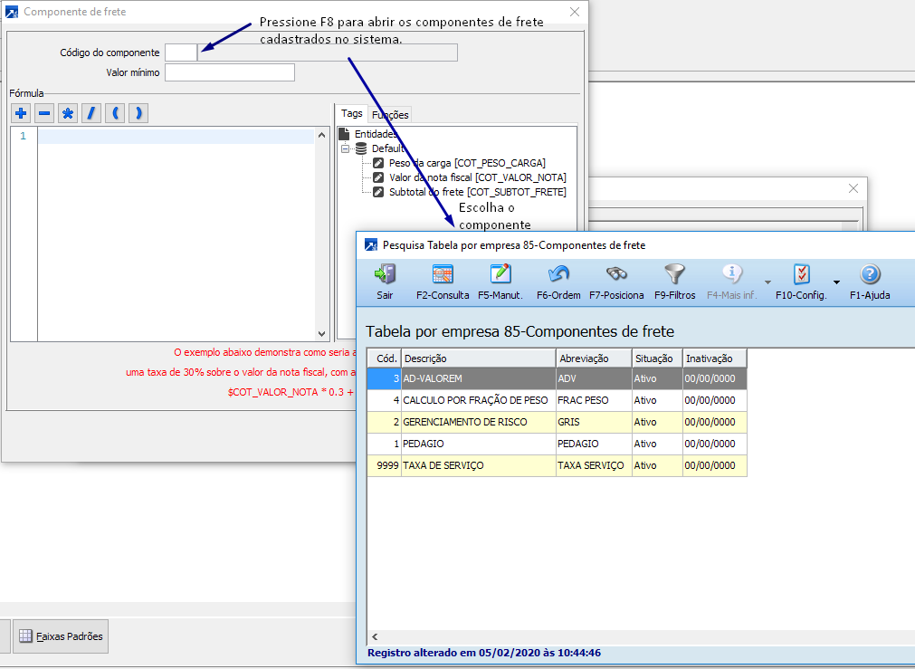 Vamos por exemplo, buscar o componente "TAXA DE SERVIÇO".