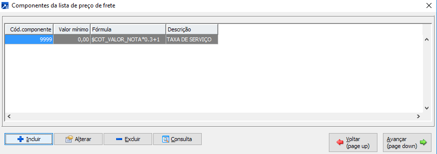 Ou seja: Você pode ter mais de um componente vinculado a todas as rotas cadastradas na lista de preço, ou mais de um componente vinculado a rota que está sendo incluída na tabela de preço ou mais de um componente vinculado a faixa de peso daquela rota cadastrada. Por isso o sistema abre o Grid acima.