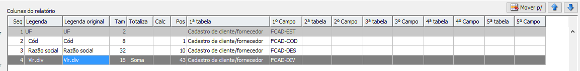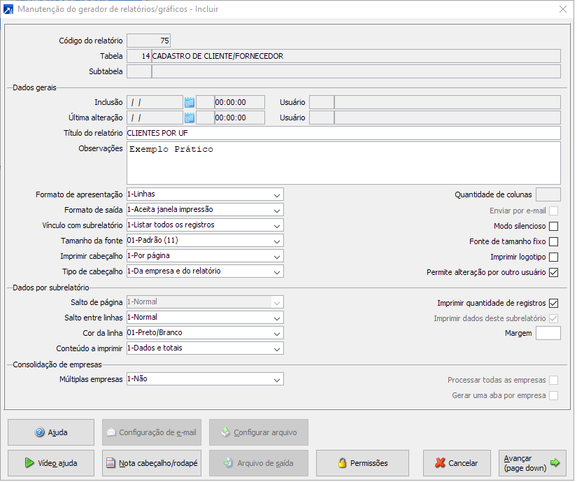 Exemplo com agrupamento de campos, quantidade de registros e totalizador.