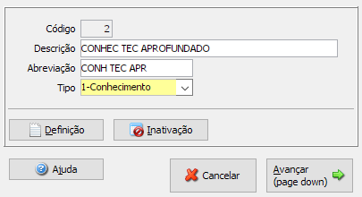 No botão <Definição> deve ser colocado uma breve descrição do que representa a competência cadastrada.