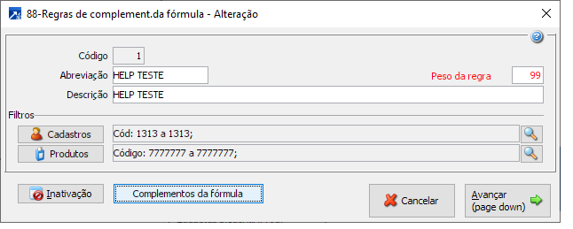 Para sanar tal necessidade precisamos em primeira instância criar a regra na Manutenção das Regras da Fórmula, onde podemos fazer da seguinte forma: