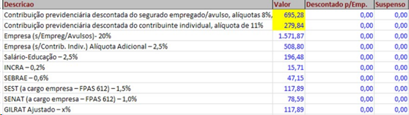 - Minha diferença esta nos encargos, INSS PATRONAL