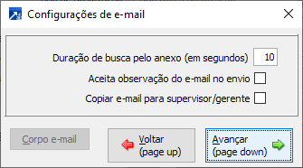 Configurações para envio de e-mail com listagem e recibo aos representantes.