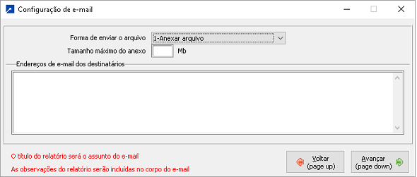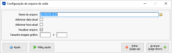 - Nome do arquivo: Diretório completo de onde o relatório vai ser salvo. Precisa conter diretório e o nome do arquivo com extensão, conforme as recomendações.