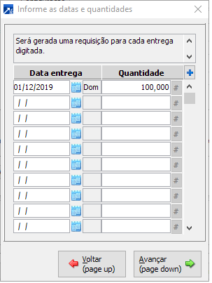 Este campo indica que, ao se registrar a Nota Fiscal de entrada da compra, o SIGER® deve realizar seqüencialmente os movimentos de estoque de Entrada por Compra e Saída Interna do item comprado.