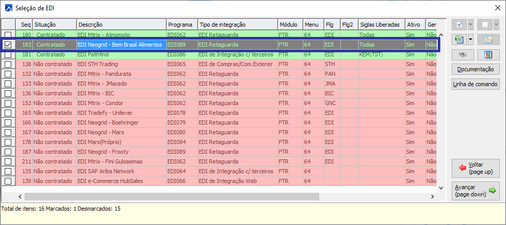 A rotina do EDI Bem Brasil (Neogrid) consiste na exportação de arquivos no menu FTR 6.4-K.