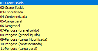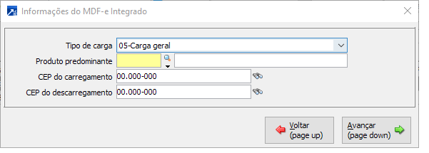 Produtos predominante nas notas selecionado nesse MDF-e, assim como o tipo de carga.