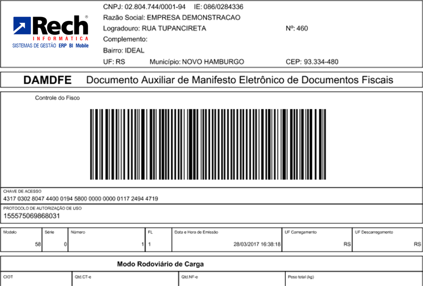 Dados do documentos carregados nesse MDF-e