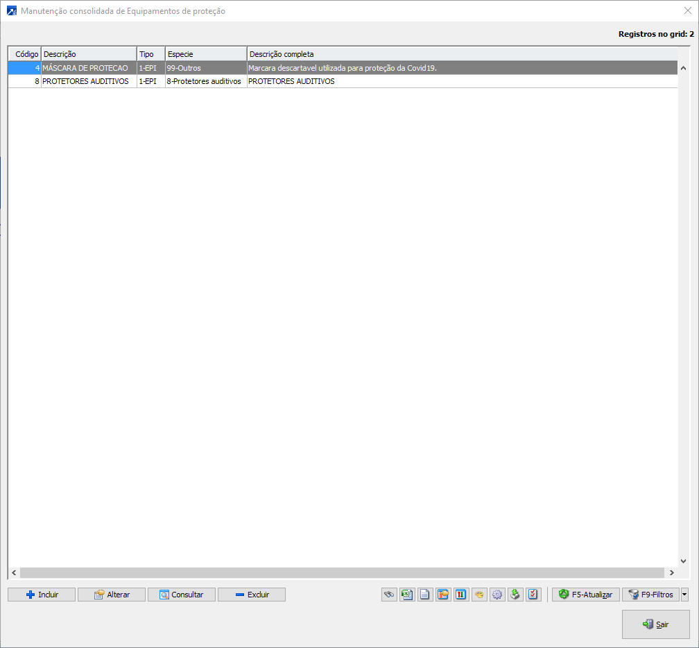 Utilizado para cadastrar os EPIs/EPCs utilizados pelos funcionários, nos ambientes de trabalho que os exigem, conforme PPRA da Empresa. É utilizado no módulo de SST ( Saúde e Segurança do Trabalho ), são  vinculados nos riscos dos ambientes ( Cargos, seção, departamento ou ambientes ) conforme a definição nas implantações com base nos Programas de Saúde e Segurança da Empresa.