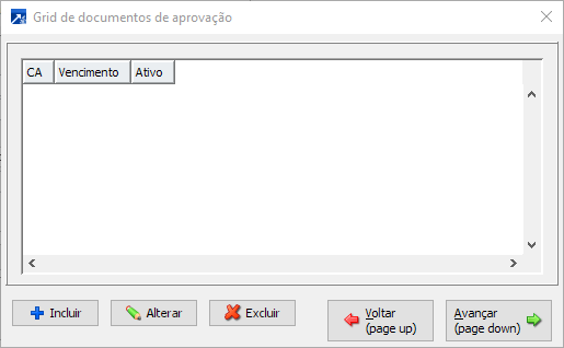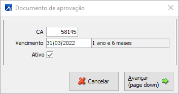 Importante informar o documento de aprovação deste EPI, para isso deve clicar no botão < Aprovações > que vai abrir a tela abaixo: