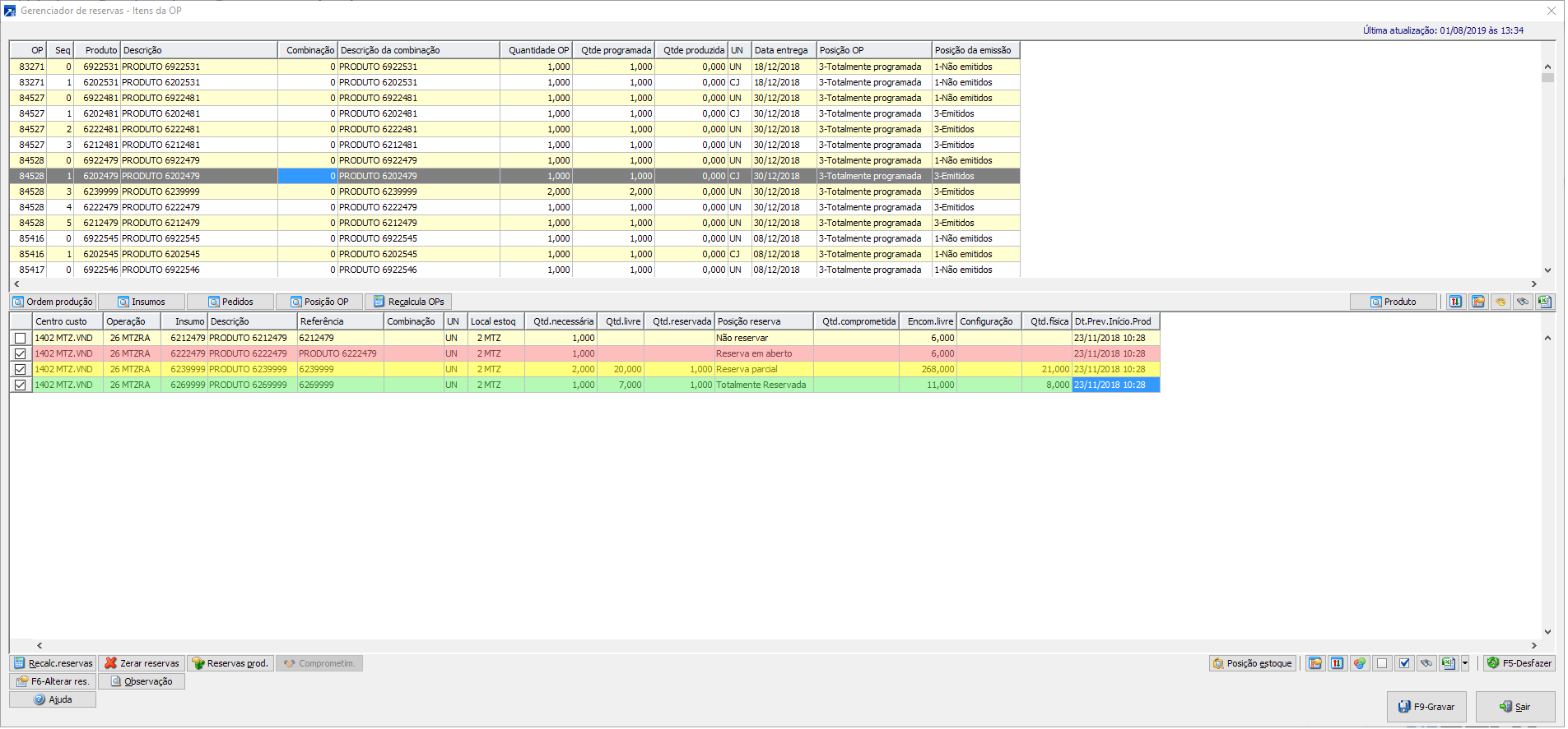 A OP deve estar com posição parcialmente/totalmente programada ou em produção