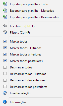 Clicando com botão direito do mouse sobre o grid, serão exibidas outras opções de exportação.