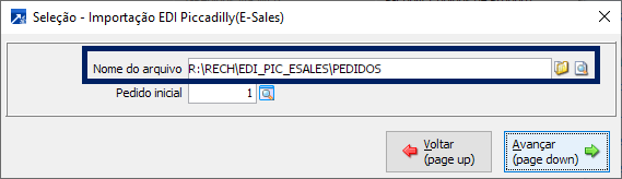 A importação do arquivo do EDI da PICCADILLY é realizada no menu FTR 6.6-I (Importação de Pedidos).