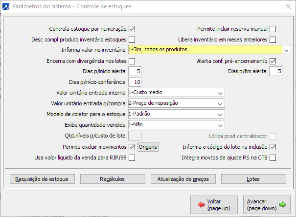 É importante que o sistema esteja configurado para aceitar valor nas digitações de inventário.