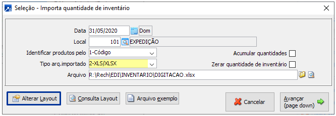 Importando Digitação de Inventário de Produtos Nunca Movimentados