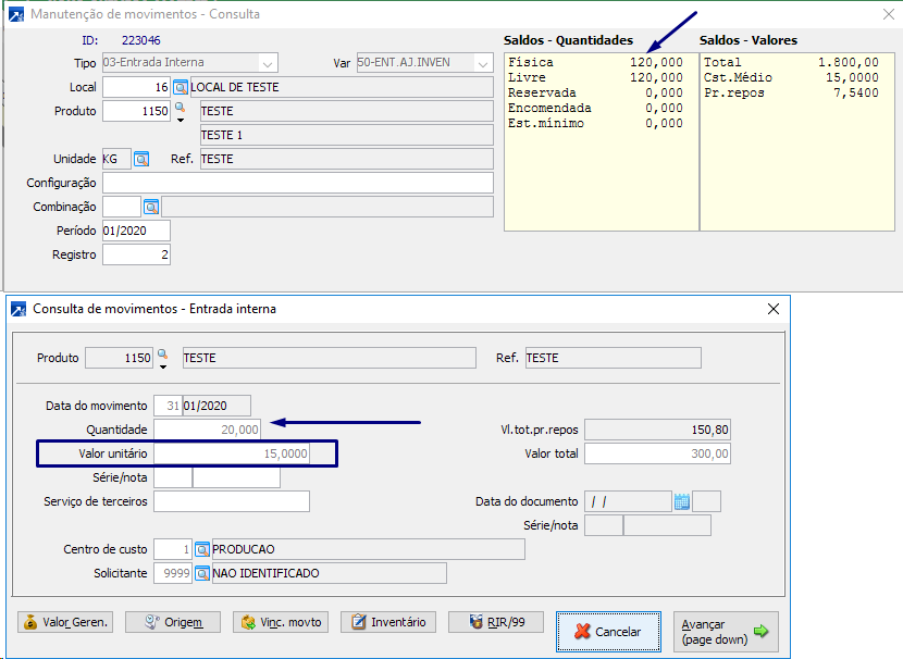 Ou seja: Mesmo na planilha o valor unitário estando zerado, como já havia movimento no local de estoque o sistema pega o valor daquele acumulado para compor o ajuste de inventário.