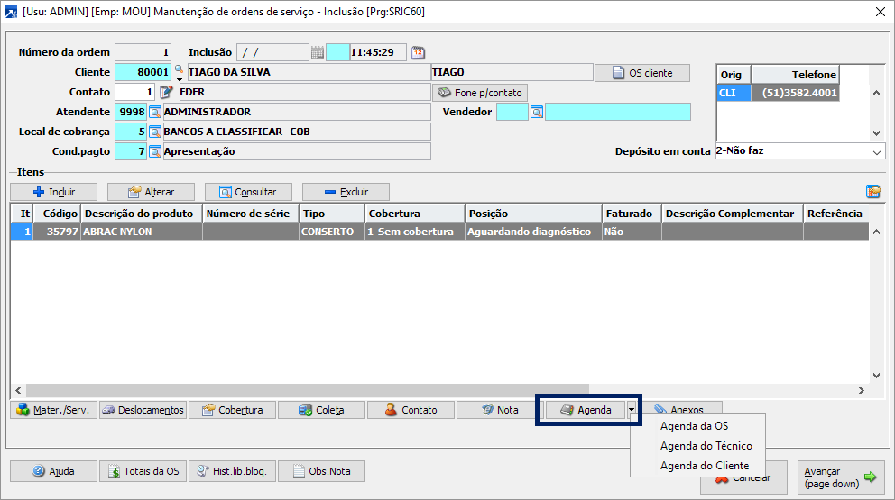 A integração da Agenda do SIGER® com o módulo de Ordem de Serviço serve para vincular os compromissos com suas respectivas OS's, de forma que fique mais fácil a visualização do trabalho do operador. Desta maneira é possível saber em que data e horário o operador estava trabalhando em determinada OS .