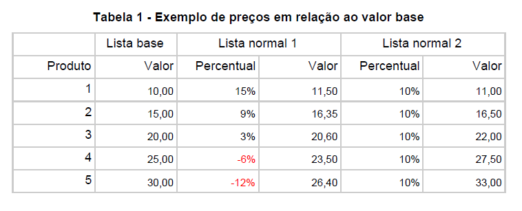 6. O percentual sobre a lista base é uma margem e permite informar valores negativos.