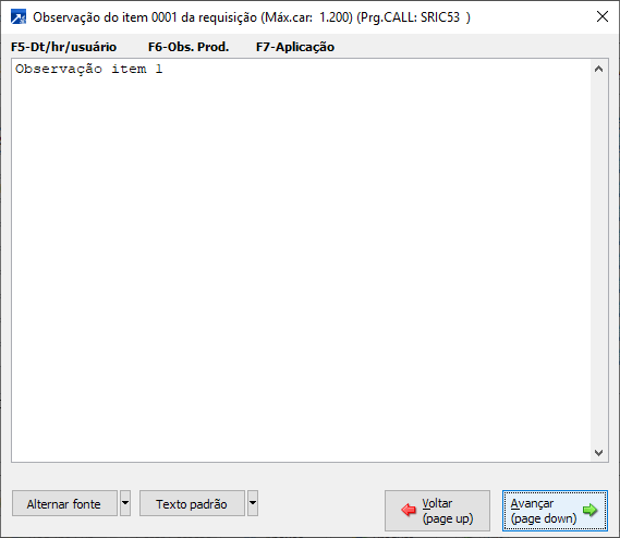 O texto desta janela pode ser ajustado individualmente em cada item da requisição, se for necessário.