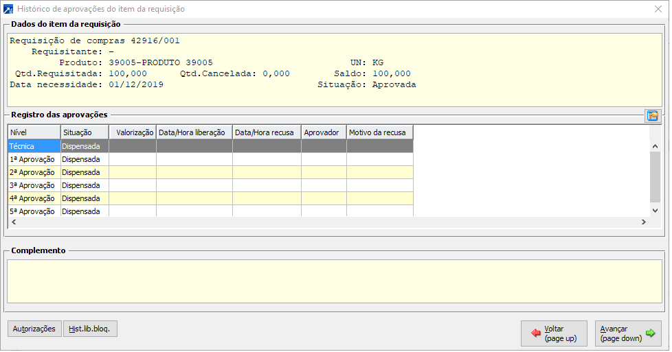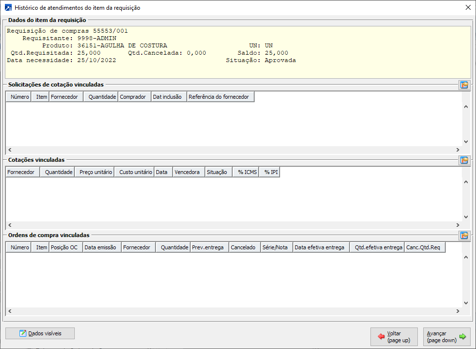 Se o sistema não estiver configurado para efetuar a "Aprovação de Requisições de compra", a mesma ficará imediatamente disponível para que o departamento de compras dê inicio ao seu processo.