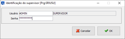 Abre a janela de login do usuário supervisor que fará a manutenção das permissões de usuários, cadastro e inativação de usuários ativos.