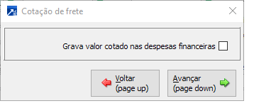 Grava o valor do frete cotado no campo de despesas financeiras.+ Saiba mais