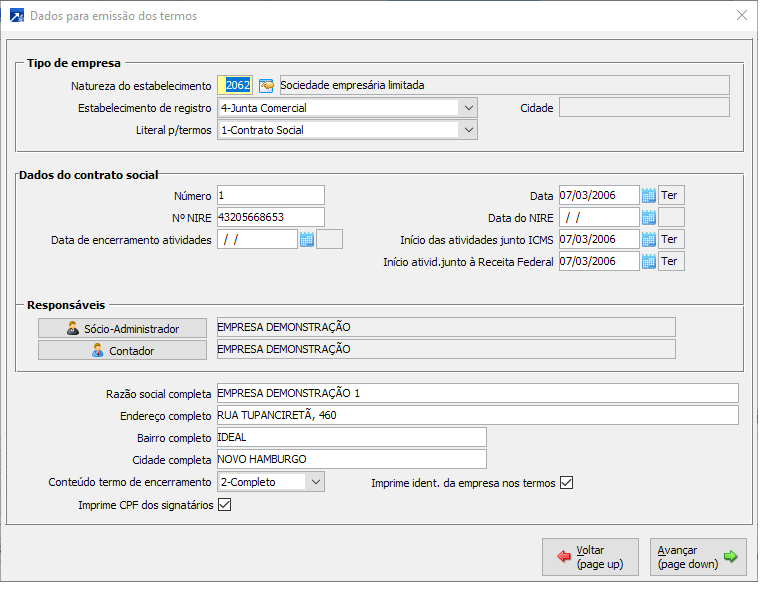 Será inserido a data inicial da empresa para processamento e demais informações: