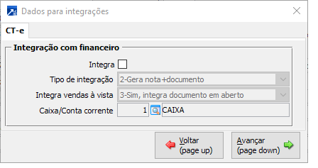 Se haver integração com o financeiro, entre CT-e e o módulo financeiro, deve ser configurado a partir desses parâmetros.