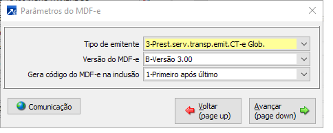 Será feito a configuração do MDF-e por esse botão, por exemplo qual seria o tipo de emitente.