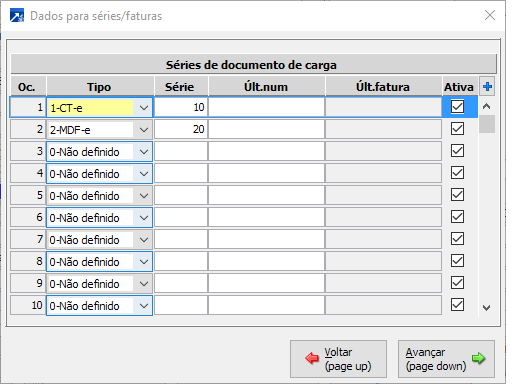 Nessa área será configurado a série do MDF-e e do CT-e.