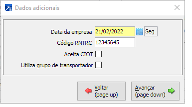 Código RNTRC ( Registro Nacional de Transportadores Rodoviários de Cargas ), caso a empresa o tenha.