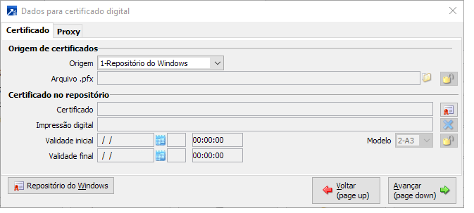 Inserir o certificado digital, que será usado para validação do documento perante o SEFAZ.